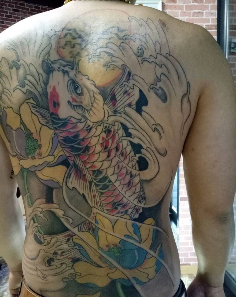 锦鲤纹身图片_背部传统动物成品纹身图案