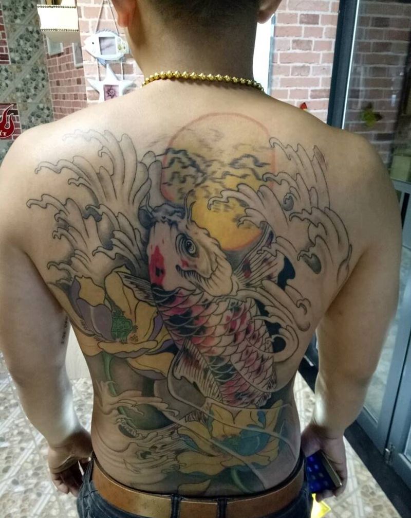 锦鲤纹身图片_背部传统动物成品纹身图案