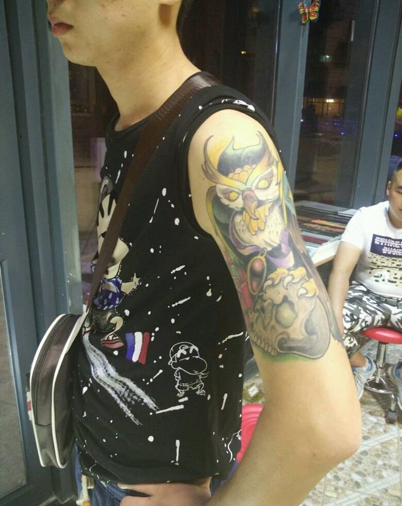 当前位置: 首页 >辽宁省丹东市纹身店-烈焰堂刺青纹身图案>猫头鹰纹身图片_手臂欧美传统动物成品纹身图案