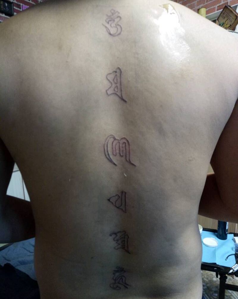 六字真言纹身图片_背部清新图腾成品纹身图案
