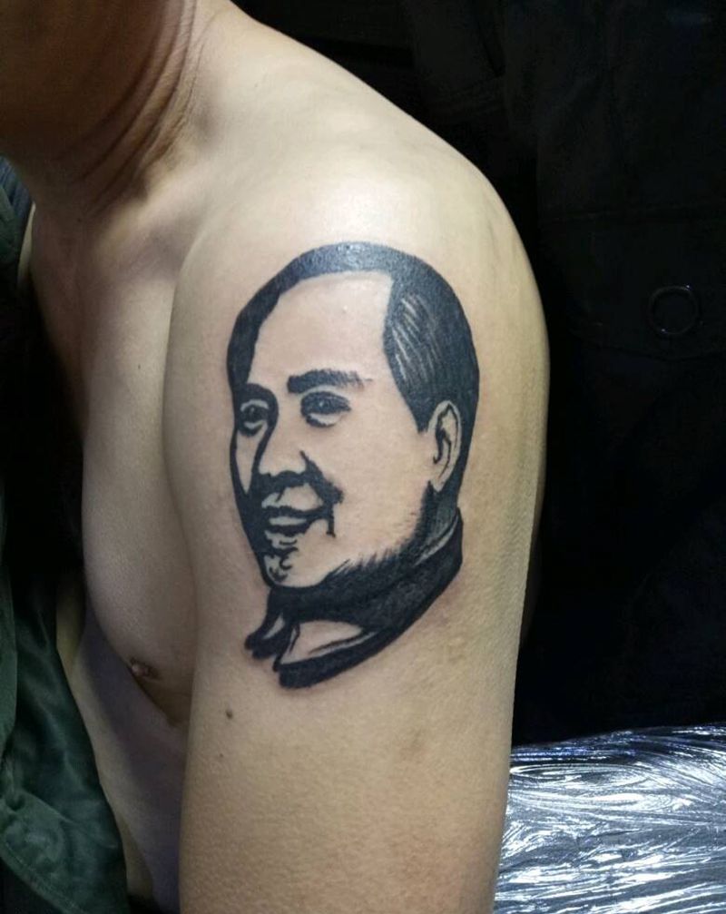 当前位置: 首页 >辽宁省丹东市纹身店-烈焰堂刺青纹身图案>毛爷爷纹身图片_手臂肖像成品纹身图案