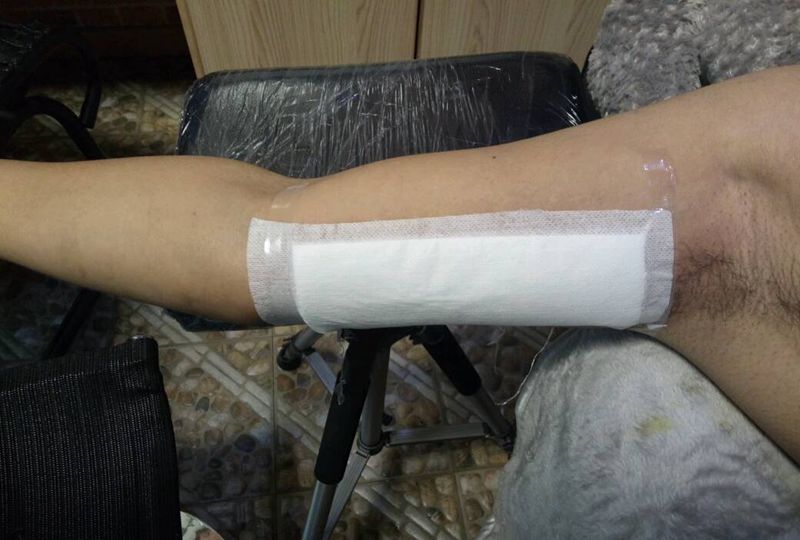• T包小腿吹火男+阿多福纹身图片_腿部老传统新传统吹火男阿