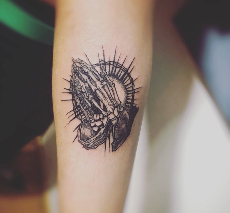 当前位置: 首页 >辽宁省盘锦市纹身店-沧水刺青纹身图案>祈祷之手纹身图片_手臂图腾点刺纹身图案
