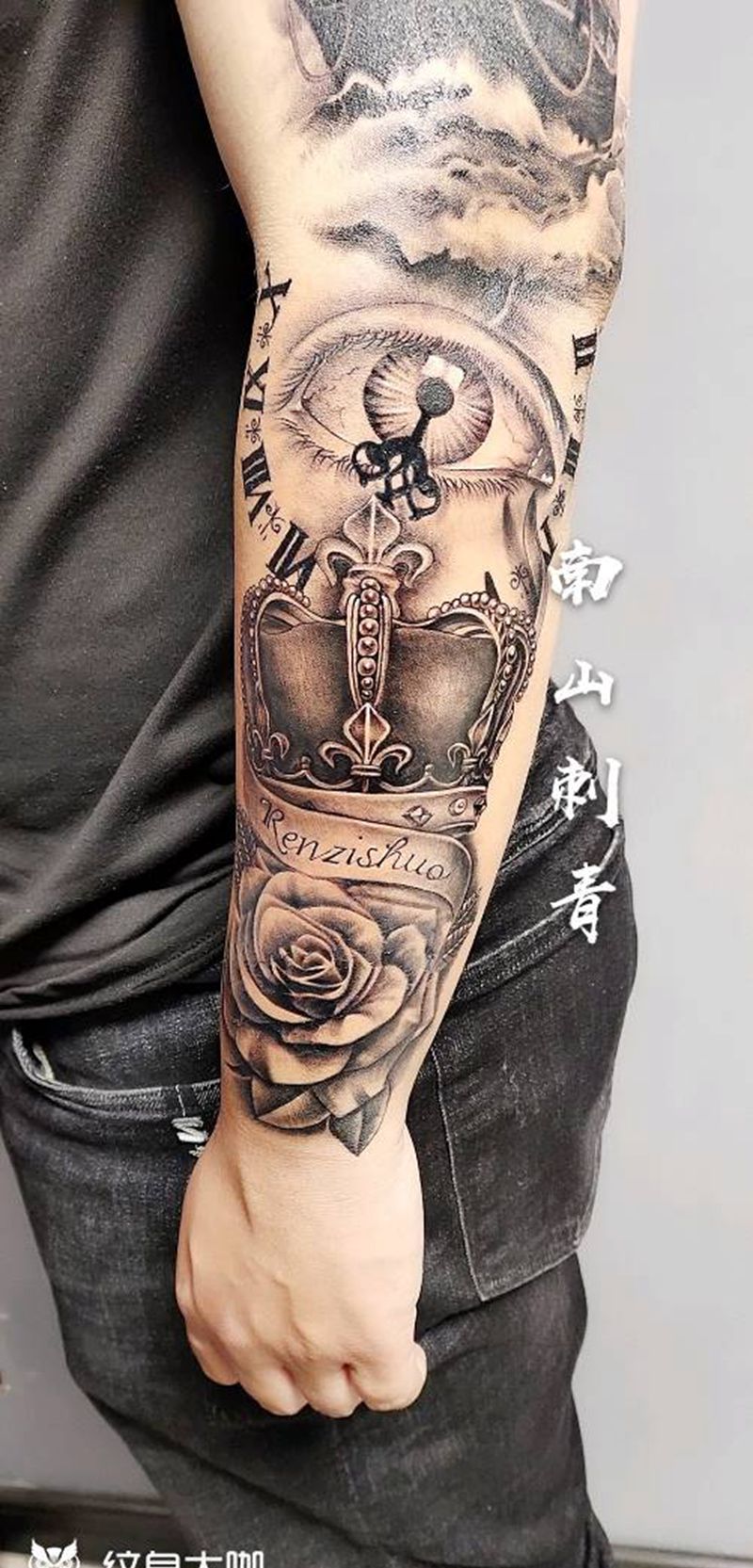 花臂纹身图片_手臂腿部欧美写实新传统写实花臂纹身图案