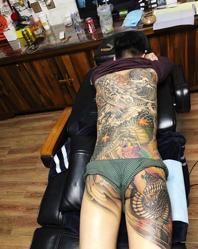 当前位置: 首页 >辽宁省葫芦岛市纹身店-艾加纹身工作室纹身图案>满背龙纹身图片