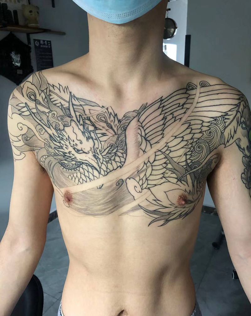 花胸凤凰纹身图片_胸部新传统凤凰纹身图案