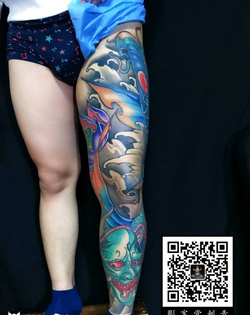 • T网红王老大花腿龙纹身图片_腿部新传统纹身图案