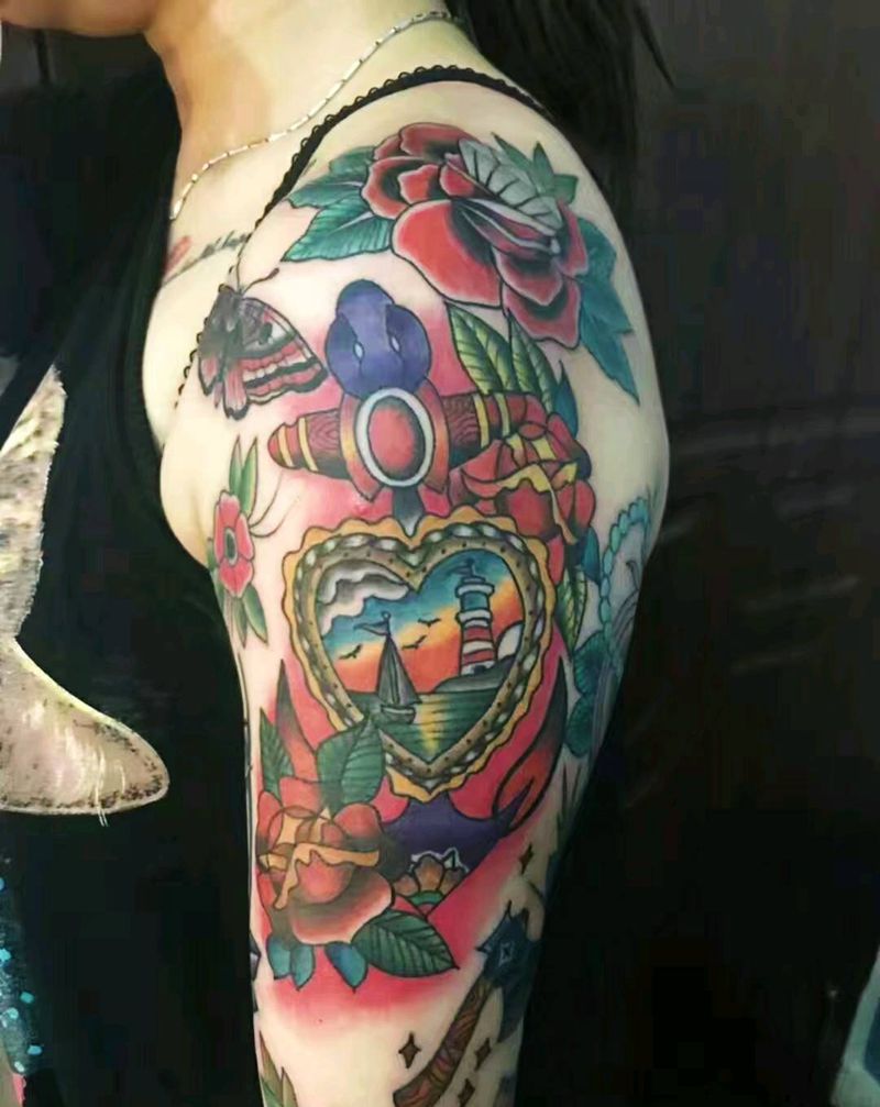 • 女性大花胸纹身_43张霸气漂亮的女性大花胸纹身图案作品