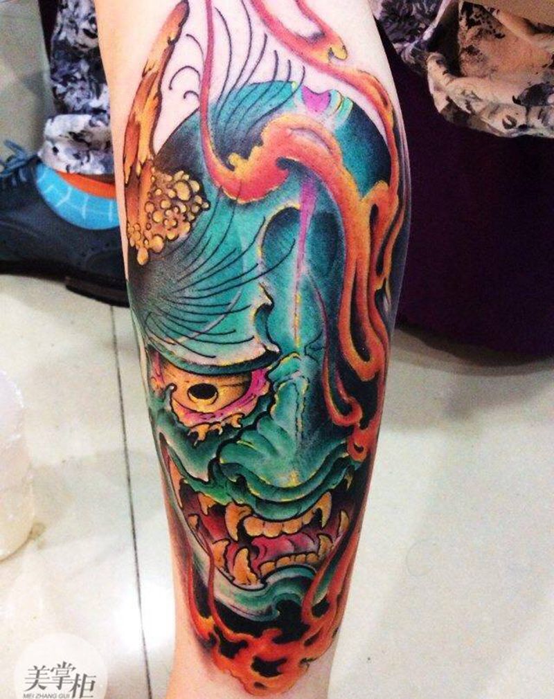 • T包小腿吹火男+阿多福纹身图片_腿部老传统新传统吹火男阿