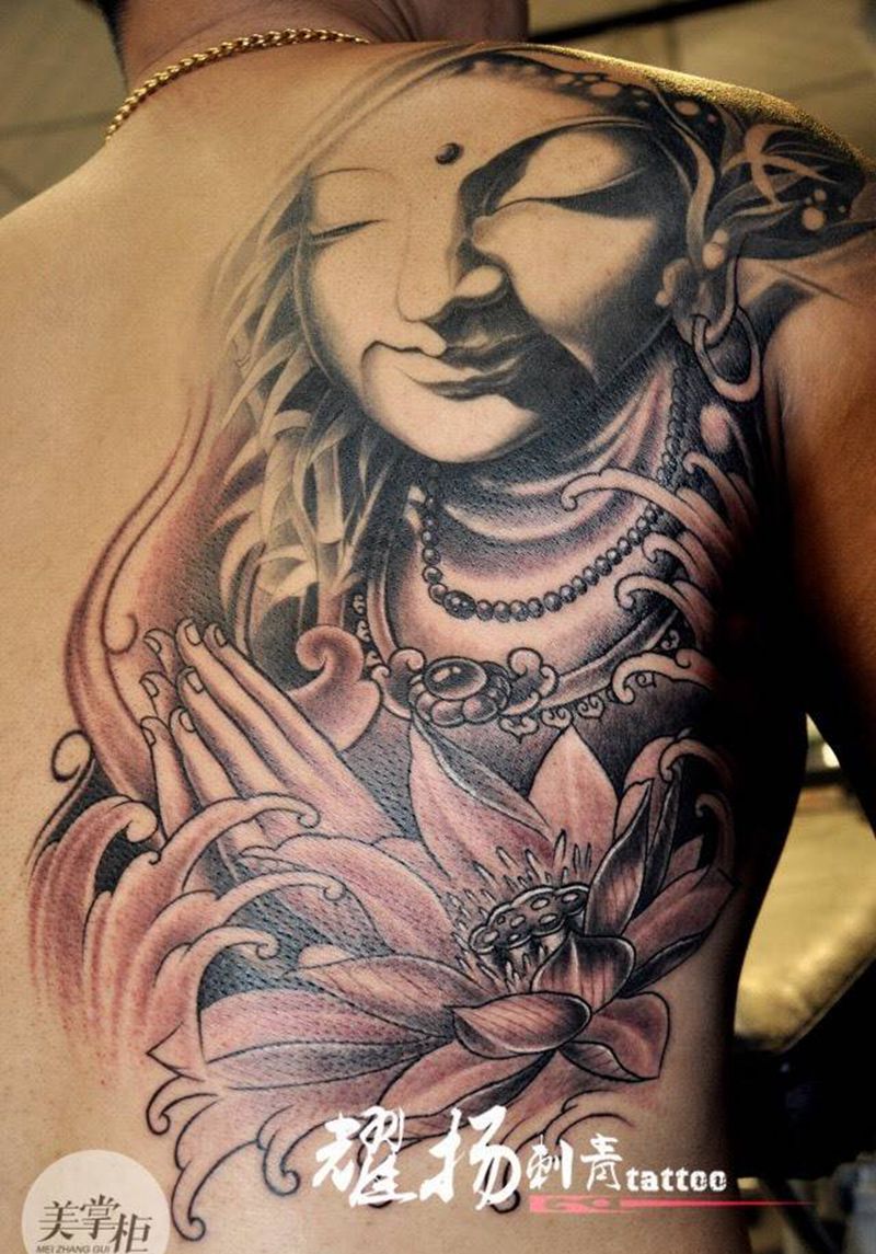 黑灰满背纹身图案
