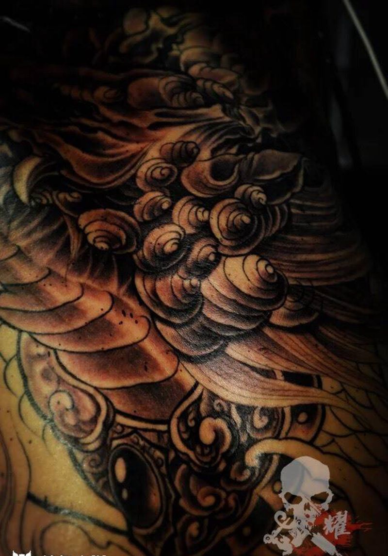 耀扬刺青家族-麒麟吐珠纹身图片_肩部腰部背部传统动物鬼神原创满背耀扬刺青纹身图案