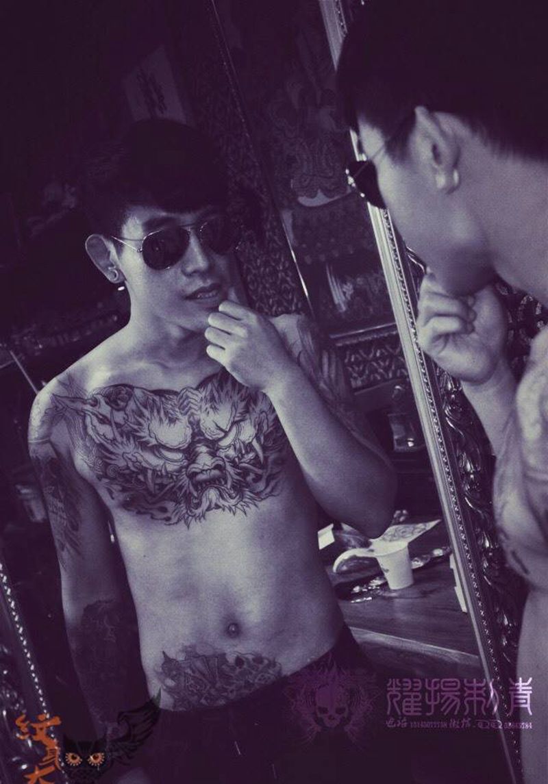 花胸龙头纹身图片_成品胸部传统动物鬼神原创花胸纹身图案