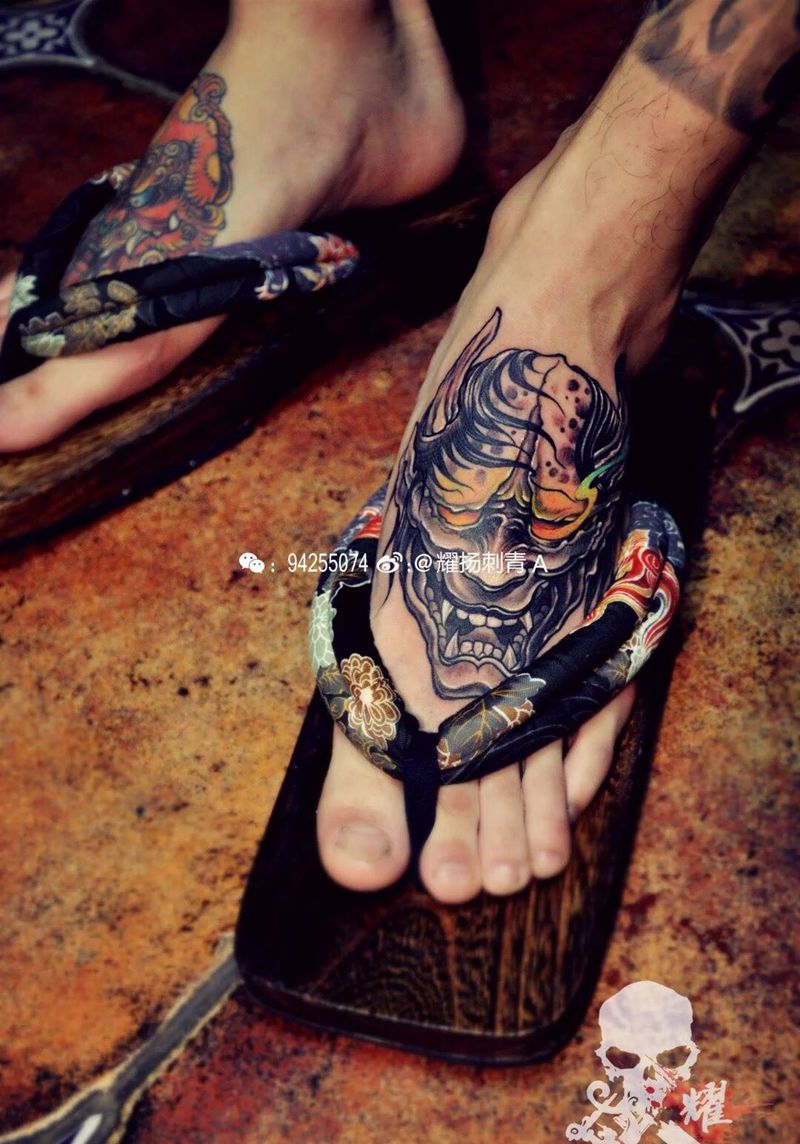 双花浩哥纹身图片_成品脚部传统肖像鬼神原创人物耀扬刺青纹身图案
