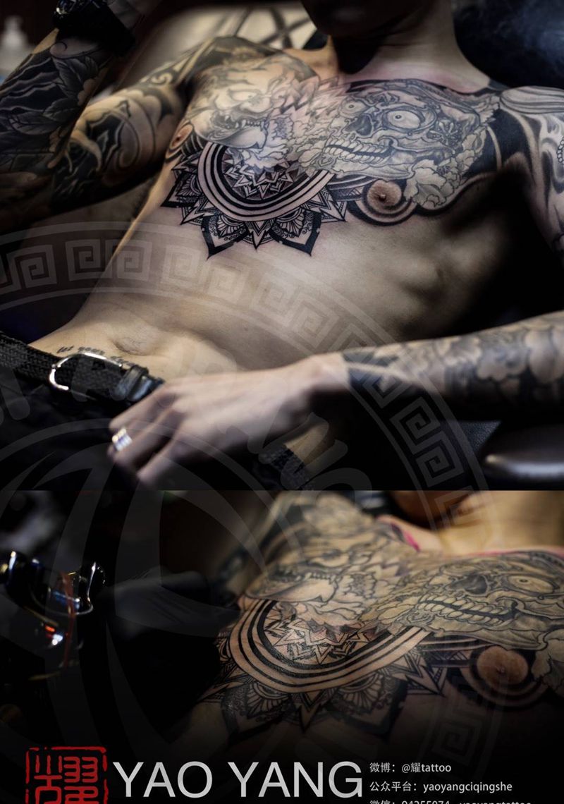 全甲浩爷-耀扬刺青作品纹身图片_成品胸部手臂肩部欧美传统原创图腾花臂花胸纹身图案