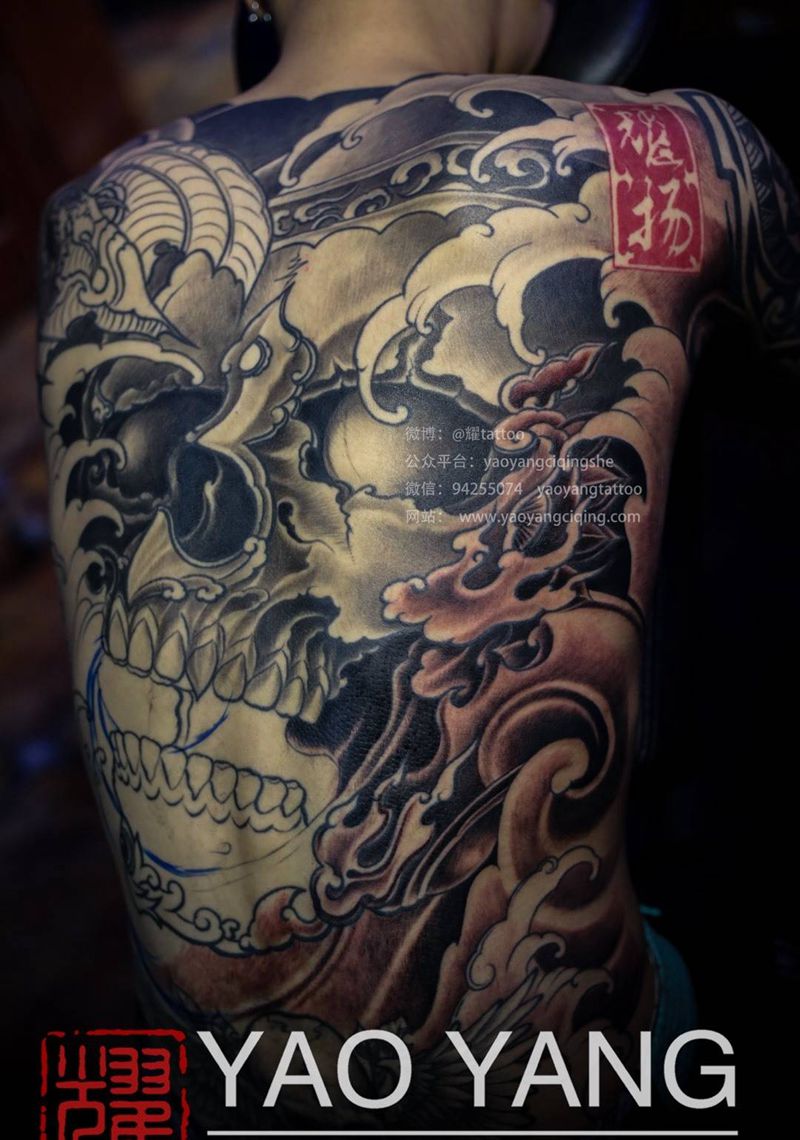 耀扬刺青纹身图片_成品腰部背部手臂胸部肩部传统原创耀扬刺青满背纹身图案