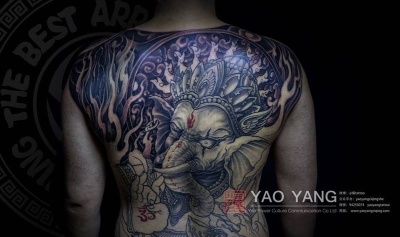 耀扬刺青 满背象神纹身图片_成品臀部肩部腰部背部传统肖像鬼神原创宗教纹身图案