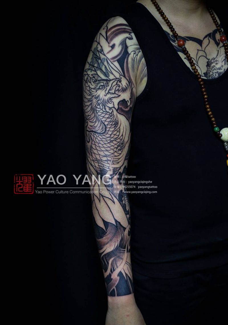 当前位置: 首页 >吉林省长春市纹身店-耀扬刺青纹身图案>描龙画凤纹身图片_成品胸部肩部手臂传统肖像动物鬼神原创植物纹身图案