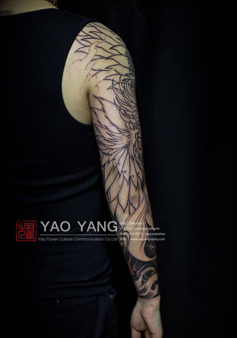 当前位置: 首页 >吉林省长春市纹身店-耀扬刺青纹身图案>描龙画凤纹身图片_成品胸部肩部手臂传统肖像动物鬼神原创植物纹身图案