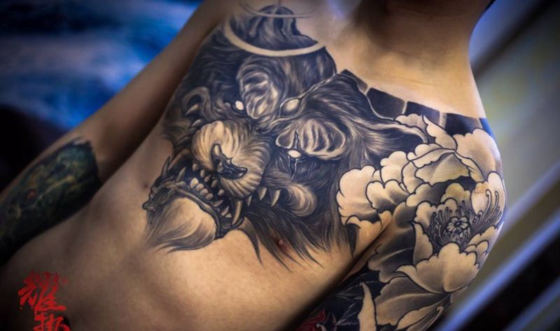 龙帝纹身图片_成品胸部手臂传统肖像习俗动物人物鬼神原创纹身图案