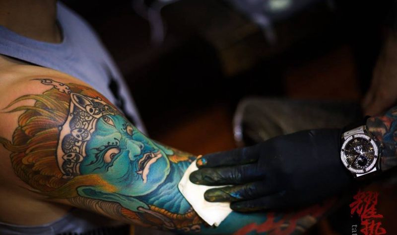 当前位置: 首页 >吉林省长春市纹身店-耀扬刺青纹身图案>花臂 大黑天纹身图片_成品手臂传统肖像人物鬼神宗教原创植物动物纹身图案
