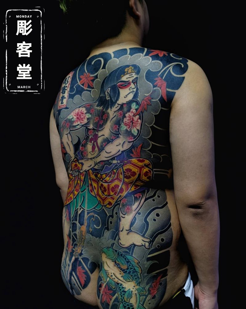 日式老传统满背童威纹身图片_背部老传统纹身图案
