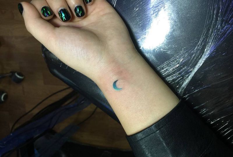 好小的一个月亮纹身图片_成品手部清新原创几何纹身图案