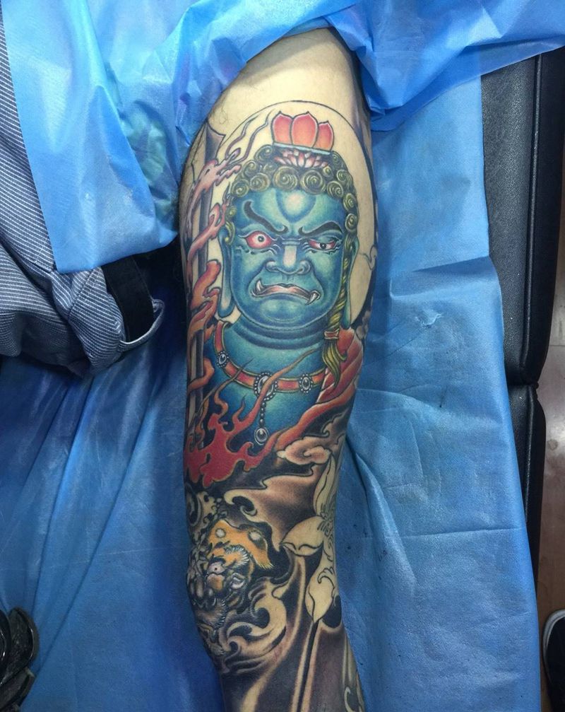 当前位置: 首页 >吉林省长春市纹身店-彫客堂刺青纹身图案>包腿 不动明王部分 未完成待续纹身图片_腿部传统人物纹身图案