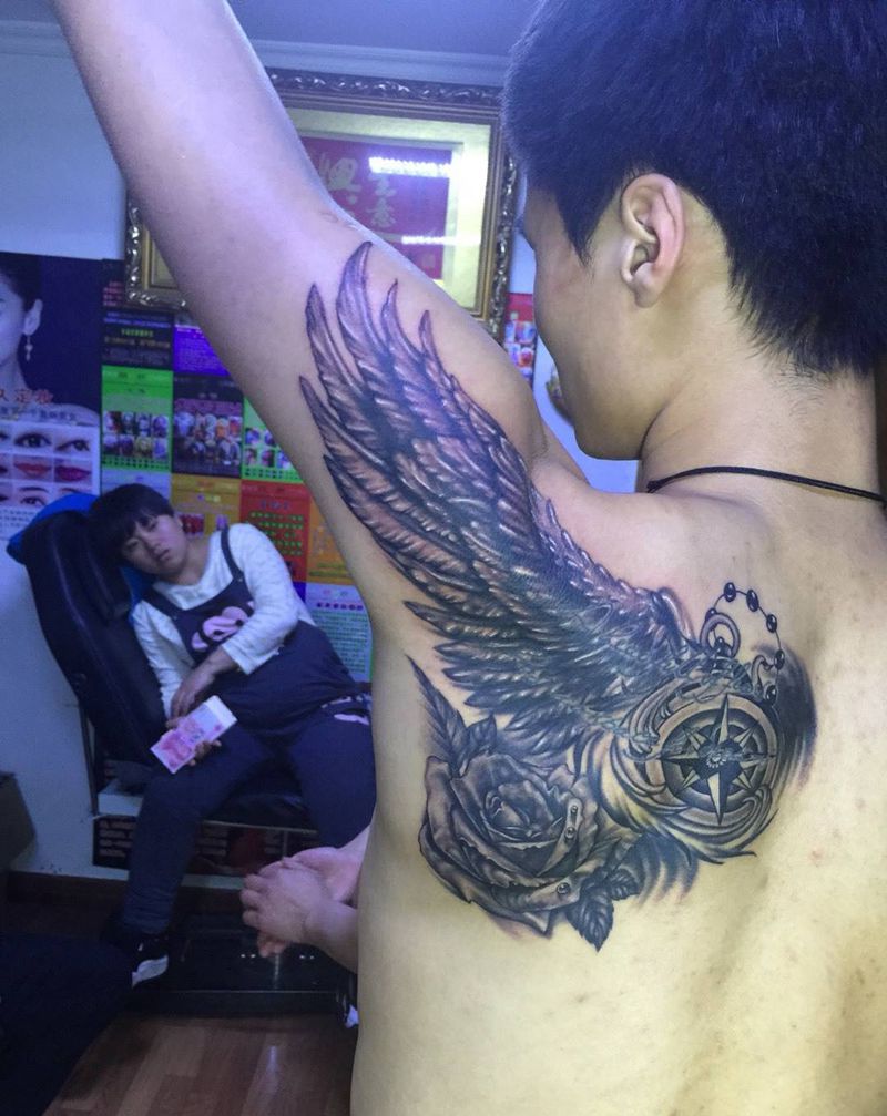 • 纹身吧推荐的披肩图腾半胛纹身图案作品展示