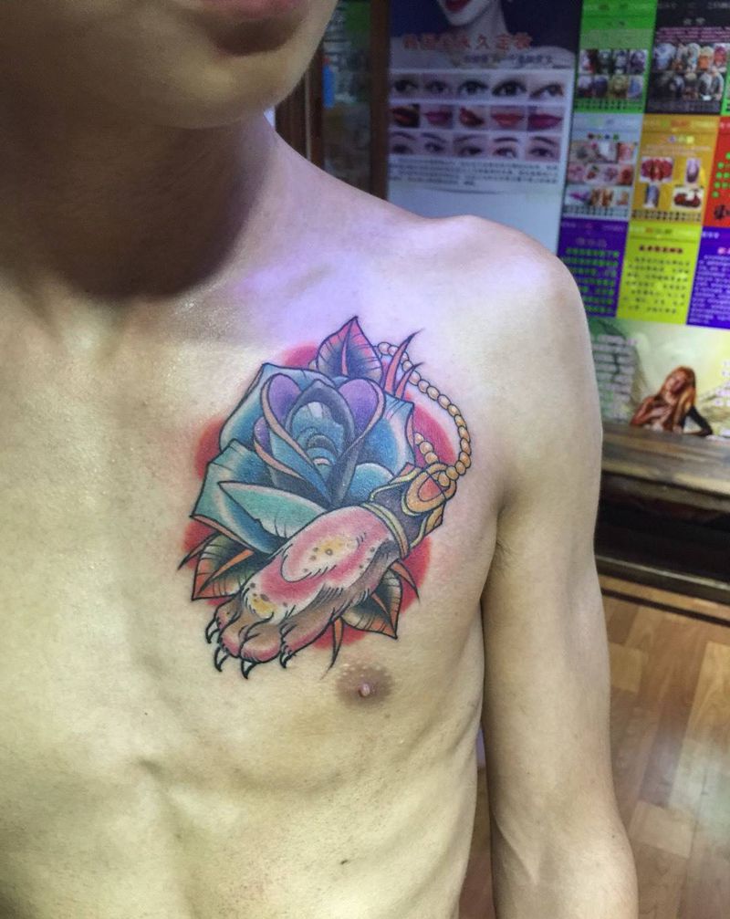 当前位置: 首页 >吉林省长春市纹身店-彫客堂刺青纹身图案>玫瑰爪子纹身图片_欧美成品胸部动物纹身图案