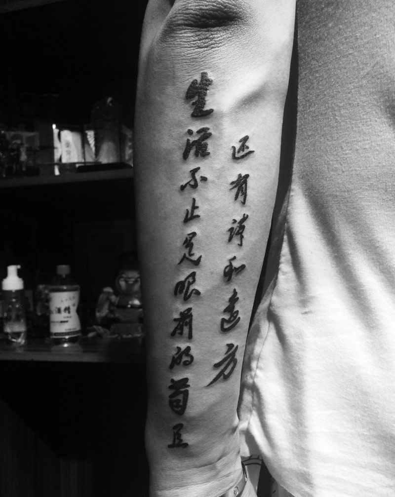 当前位置: 首页 >吉林省长春市纹身店-彫客堂刺青纹身图案>汉字纹身图片_成品手臂国画字符原创纹身图案