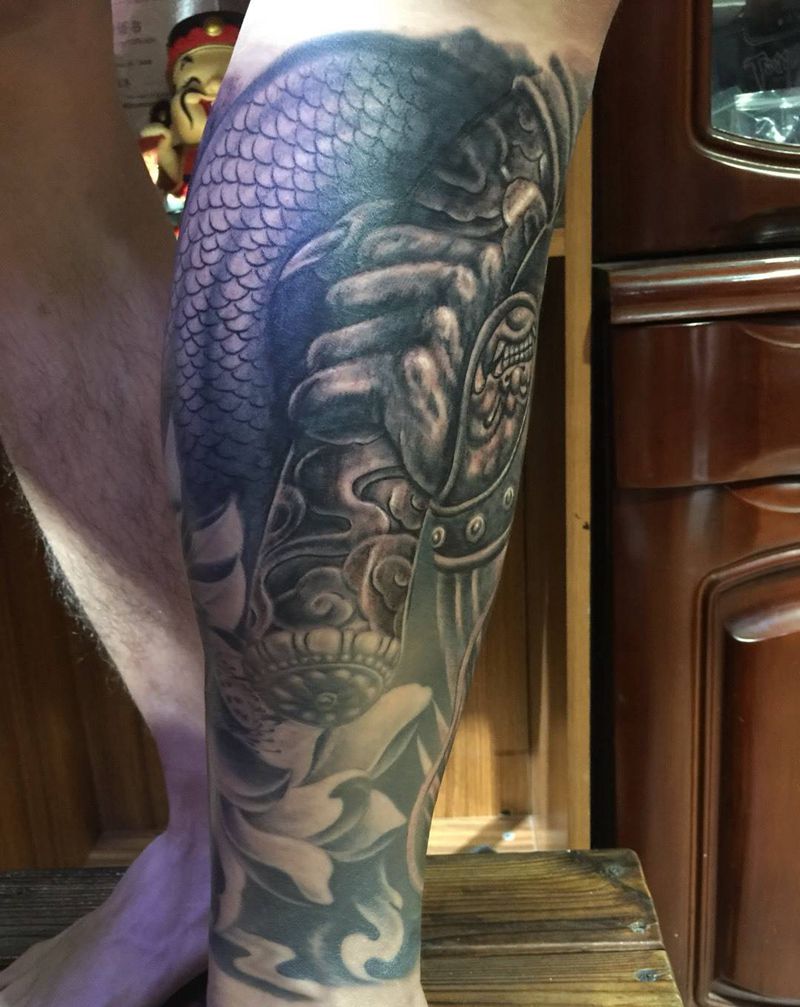 • T网红王老大花腿龙纹身图片_腿部新传统纹身图案