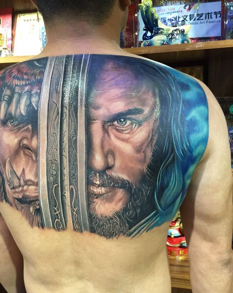 魔兽未完成待续纹身图片_背部欧美人物纹身图案