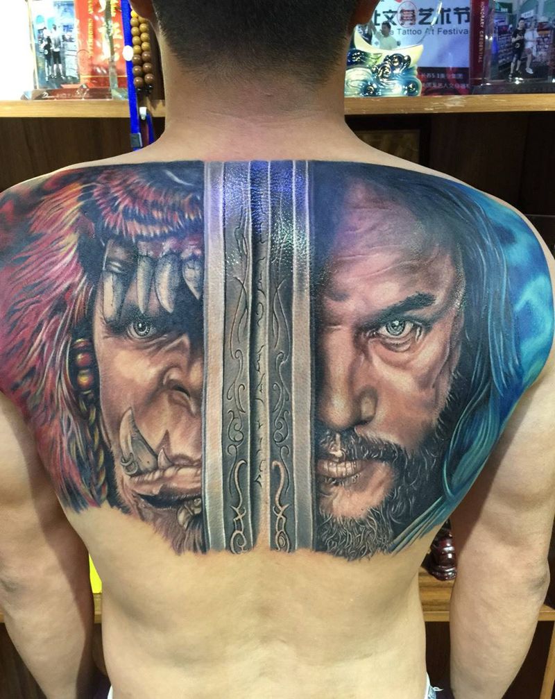 魔兽未完成待续纹身图片_背部欧美人物纹身图案
