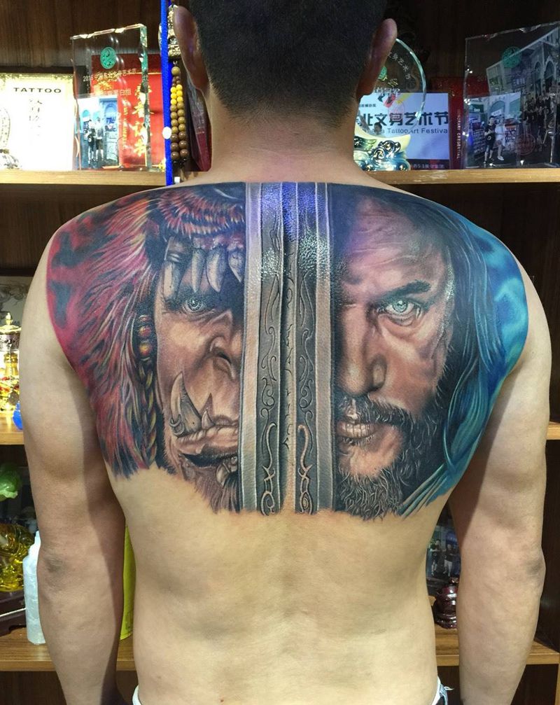 魔兽未完成待续纹身图片_背部欧美人物纹身图案