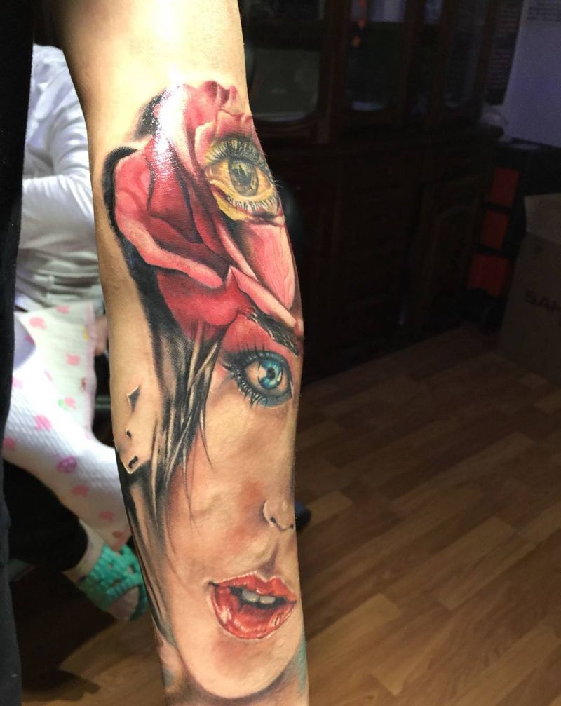 欧美彩色 美女意境 未完成待续纹身图片_手臂欧美写实人物原创纹身图案