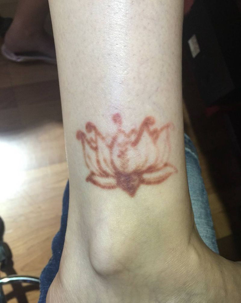 荷花 遮盖前后对比纹身图片_成品腿部传统清新原创植物纹身图案