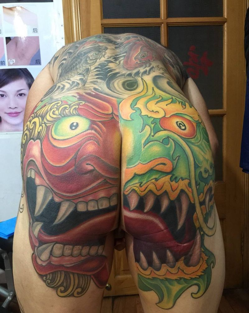 舞龙舞狮纹身图片_成品臀部传统动物原创纹身图案