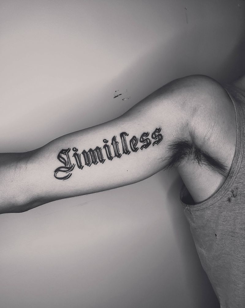 当前位置: 首页 >吉林省长春市纹身店-雾刺青工作室纹身图案>哥特字体纹身图片_手臂图腾纹身图案