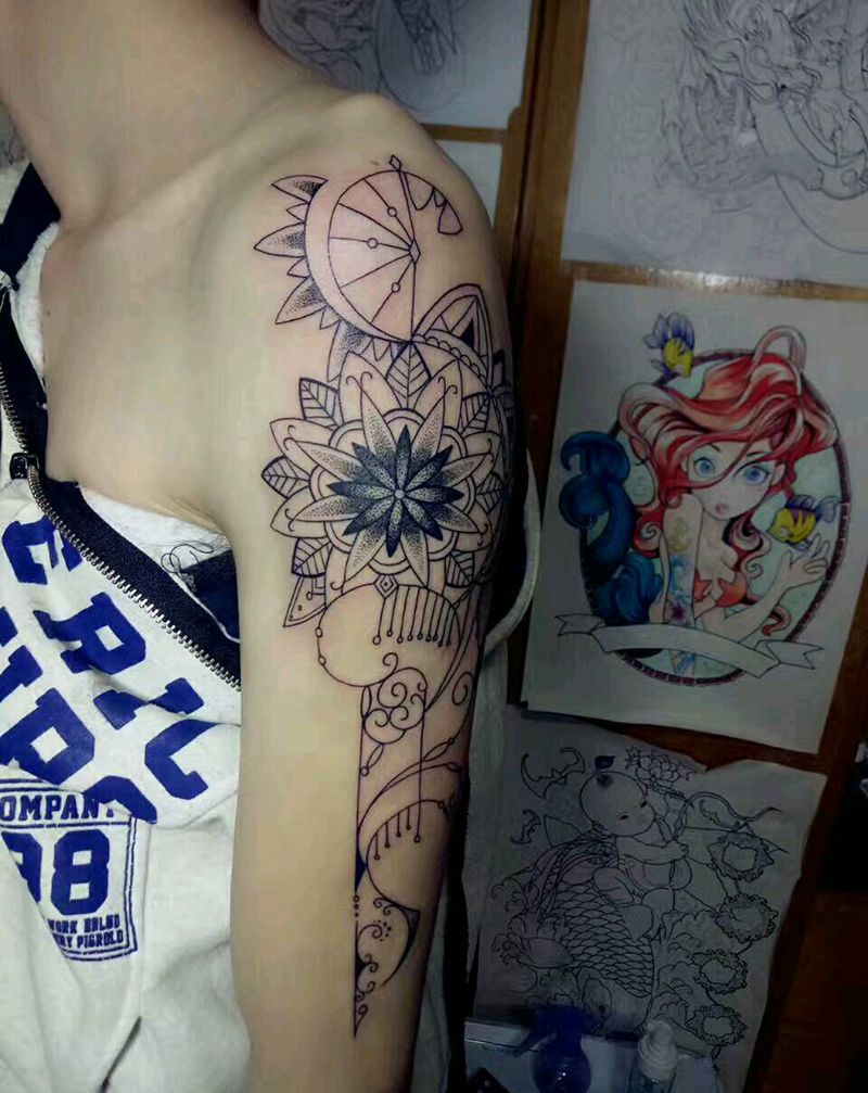 • 纹身吧推荐的披肩图腾半胛纹身图案作品展示