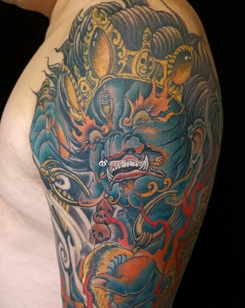 当前位置: 首页 >吉林省吉林市纹身店-少帅刺青工作室纹身图案>大黑天纹身图片_手臂新传统纹身图案