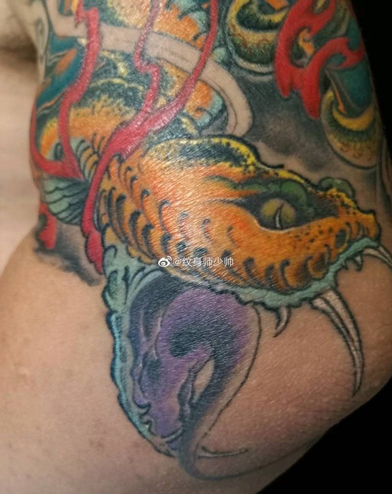• T网红王老大花腿龙纹身图片_腿部新传统纹身图案