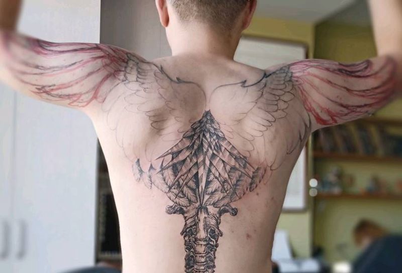 黑灰满背纹身图案