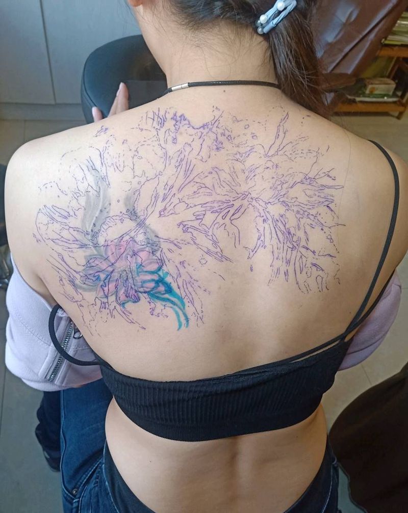 当前位置: 首页 >吉林省吉林市纹身店-少帅刺青工作室纹身图案>遮盖纹身图片_背部水彩纹身图案