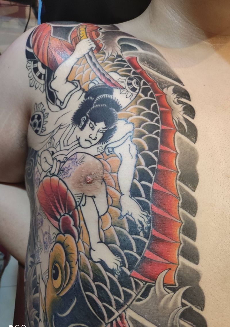 黑灰满背纹身图案