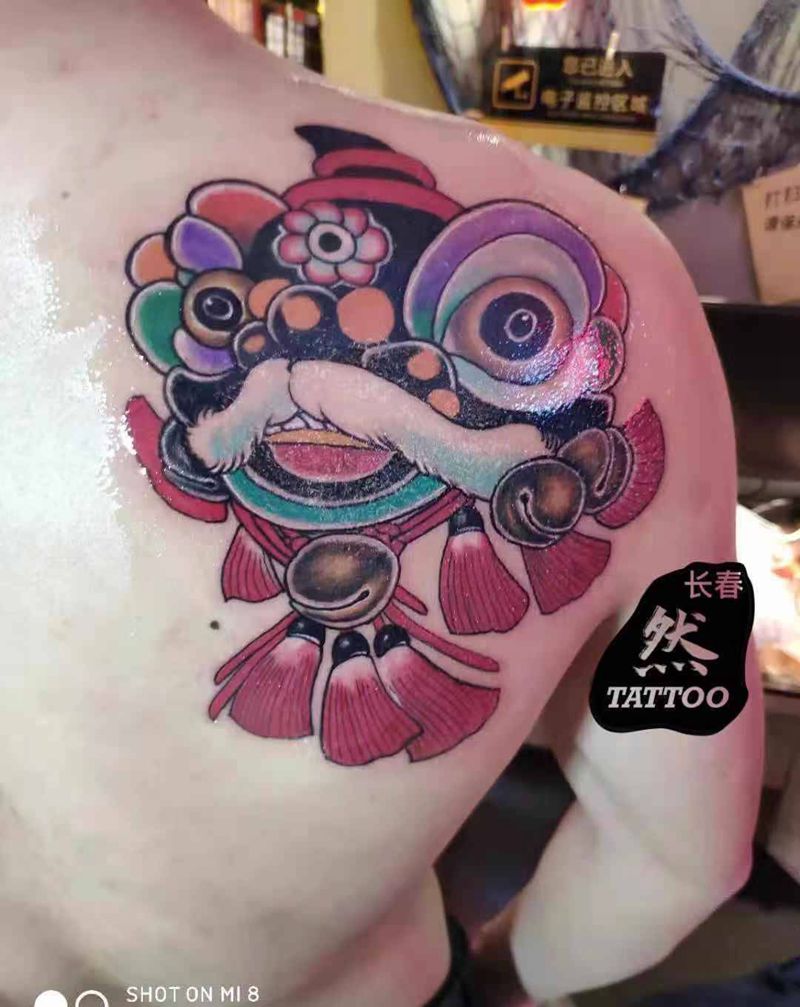 小可爱舞狮纹身图片_肩部纹身图案