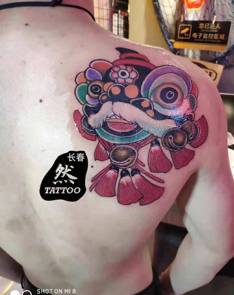小可爱舞狮纹身图片_肩部纹身图案