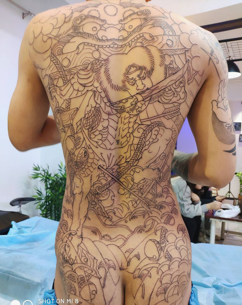 • T云龙九郎纹身图片_背部老传统云龙九郎纹身图案