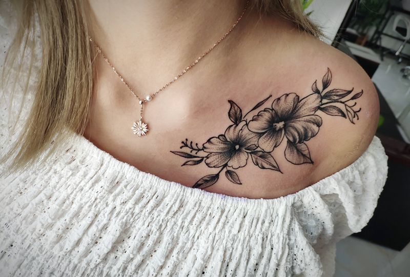 • 女性大花胸纹身_43张霸气漂亮的女性大花胸纹身图案作品