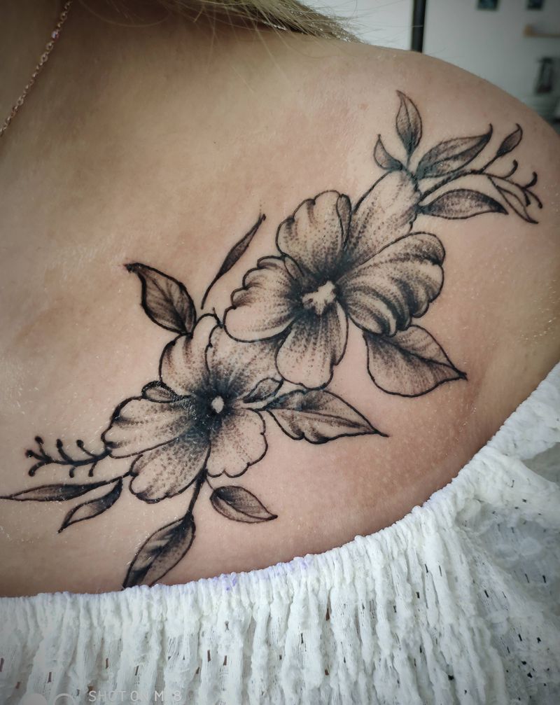素花纹身图片_肩部纹身图案