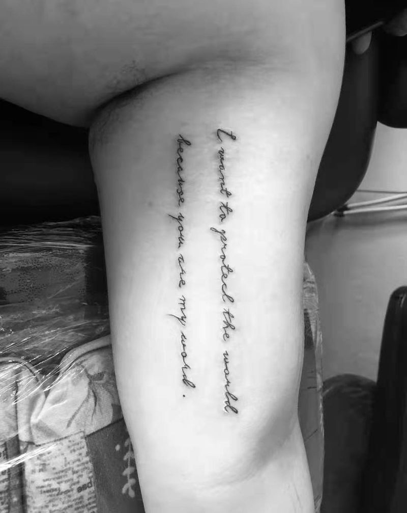 当前位置: 首页 >吉林省长春市纹身店-雾刺青工作室纹身图案>大臂英文短句纹身图片_手臂花体字英文纹身图案